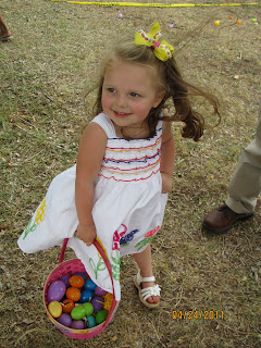 We have taken Lily the last three years to the church Easter Egg hunt. Her first easter she was only two weeks old, so no easter egg hunting for her!! The second year she didn't really understand the concpet of an easter egg hunt. She had more fun picking the eggs up and throwing them back out of the basket!! The last two years she really has had alot of fun hunting easter eggs. I am looking forwarded to many more years of hunting easter eggs with Lily.